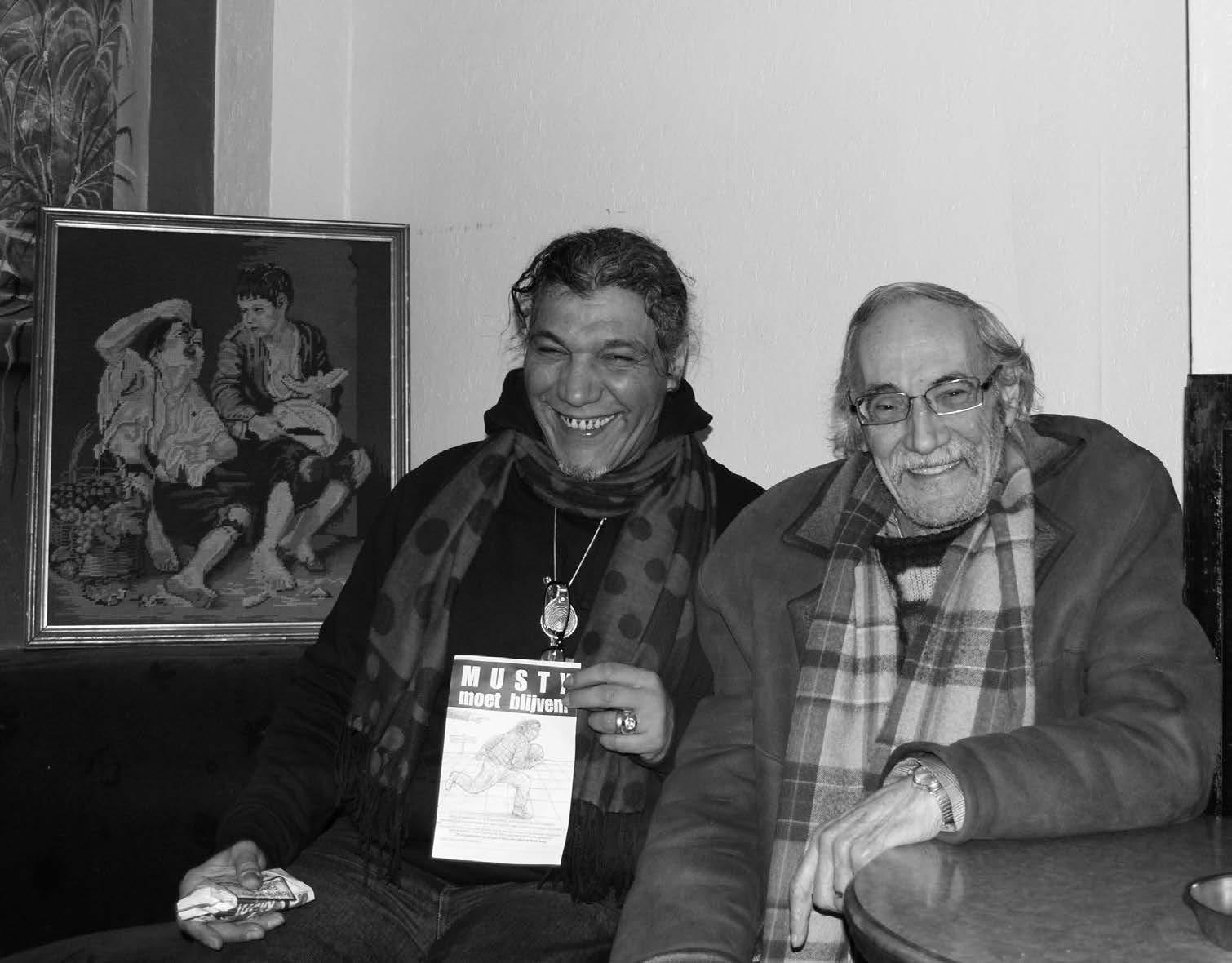 Musty kende eveneens het volkje dat gedwongen in de kant leefde. Drugsgasten, alcoholisten, dolgedraaide pillenpakkers. Als het ter plekke met één van hen fout liep was hij diegene die in de bres sprong want hij kende ze en wist wat er moest mee gebeuren. Is dat te meten? Neen, niet echt. Maar door hem kwam die man met zijn zware aanvallen van vallende ziekte nog goed terecht. Oudere Marokkaanse mensen kwamen raad vragen bij hem want ze hadden alweer een brief gekregen waar ze niets van begrepen. Musty moest de oplossing kennen want die werd betaald door ’t stad en liep altijd met een boek rond. Met godbetert, op een goeie dag, de Leeuw van Vlaanderen, een fantastisch boek vond hij het en hij babbelde er uitgebreid over met de Marokkaanse jongeren. De laatste jaren schreef hij, alweer godbetert, gedichten. de stoere a apper van weleer schreef gedichten in een schriftje. Zat hij op een bankje stil rondom zich te kijken en probeerde hij gedichten op papier te krijgen die hij instuurde naar wedstrijden. Het respect voor deze vijftiger kon er alleen maar groter door worden.