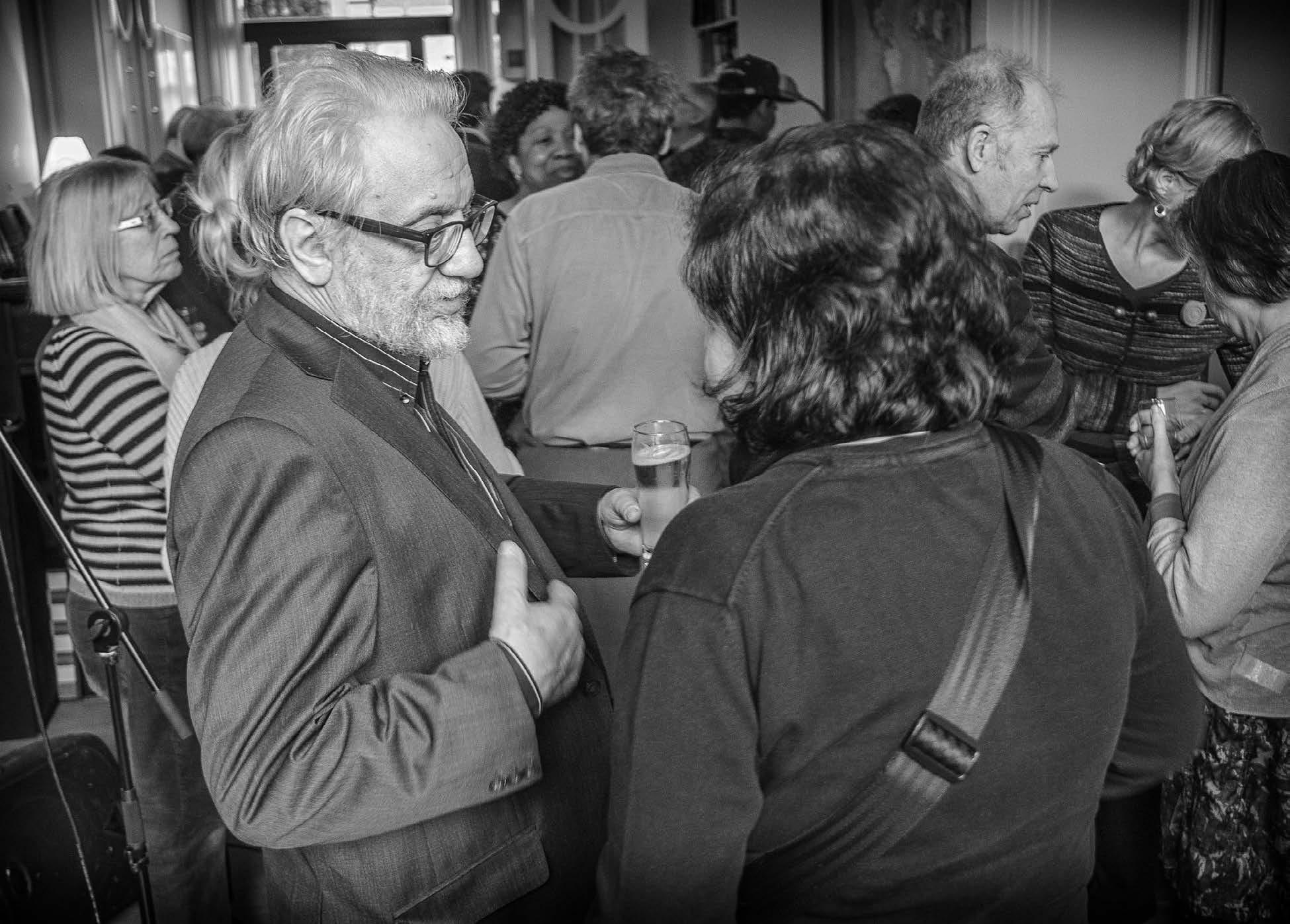 handel en verhuurders van kwalitatieve films hebben geen enkele kans meer tenzij via het kanaal dat hen tegelijk kapot maakte: het internet. Treffend is wel dat het pand waar de videotheek gevestigd is vroeger een groentenwinkel en een papierwinkel was. Twee zaken werden één en daarna?? Bemoedigend is alleszins dat de huidige eigenaars niet van plan zijn om horecazaken een kans te geven op hun gelijkvloerse verdieping. Wat het dan wel zal worden is nog even afwachten. Ondertussen hebben we er een Kruidvat bij en is er sprake van opfrissingswerken bij Delhaize zodat ze daar een tijdje dicht zouden gaan. Nog even terug naar onze receptie en de Prijs Rudi Kimpen. Die werd uitgereikt aan Musty, de pleinwerker van de Dageraadplaats die geen pleinwerker meer is maar vanaf november een pleinwandelaar werd. Ontslagen door de stad maar zijn voetzolen konden het plein niet verlaten zodat hij nog elke dag te vinden is onder de bomen. Hij is nu na al die jaren werkloos en heeft zijn roeping gevonden in de poëzie. Hij heeft namelijk een dichtbundel uitgegeven en daarvan zijn er ondertussen al vele tientallen over de toonbank gegaan. In zijn geval over de leuning van een bank op het plein. En ik vermoed dat er tegen de lente alweer een nieuw ei gelegd zal worden in de vorm van een dichtbundel. We houden iedereen op de hoogte.