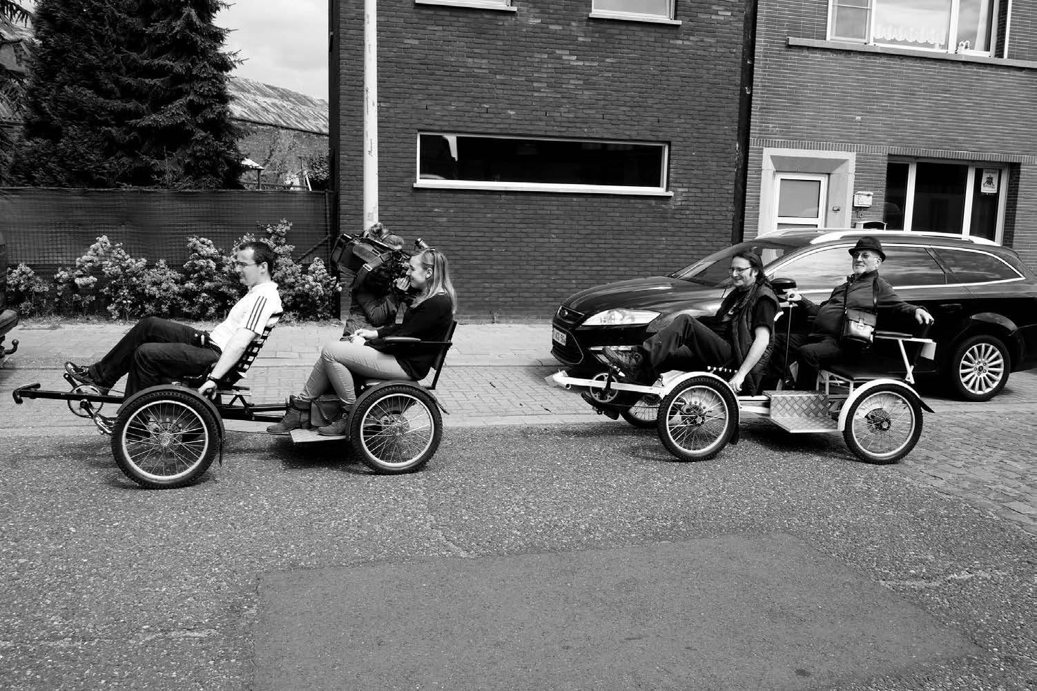 De twee fietstaxi's in actie tijdens de voorstelling met de cameraploeg van ATV aan boord. • Foto Jörg PYL