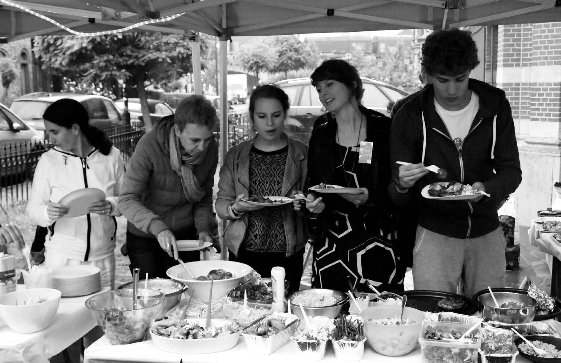 tionsplein ter beschikking te stellen, versterkt de NMBS de band van het station met de stad en met het maatschappelijk leven in de stationsomgeving. We zien dat er ’s morgens en ’s avonds mensen gehaast naar het station lopen en ’s avonds zich zo vlug mogelijk naar huis haasten. Daar willen wij verandering in brengen, door er een aangename plaats van te maken om te vertoeven . Groenten kweken lijkt ons hiervoor een goed moment om bij stil te staan. Wij willen van dit snel weg plein een even vertoef- en blijfplein maken.”
