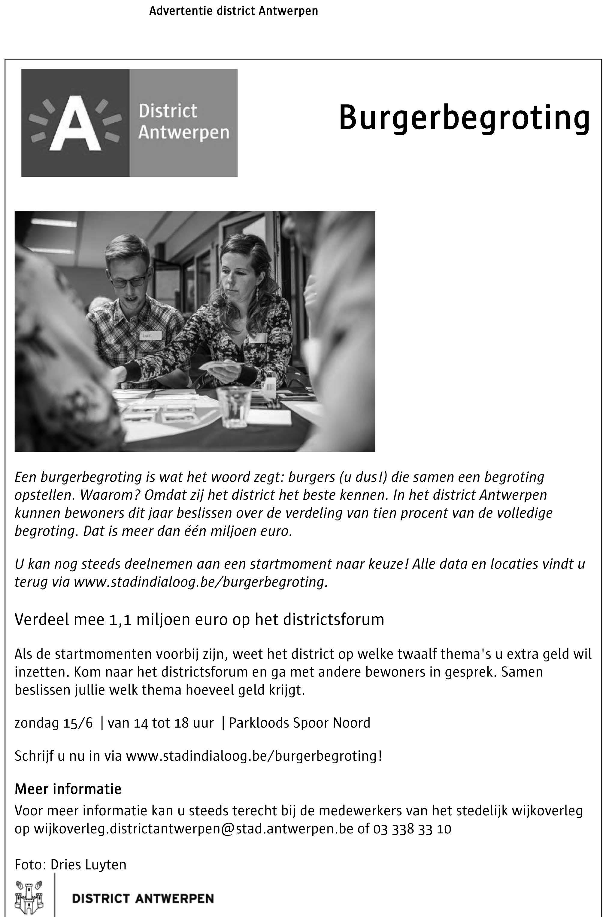 Op 15 juni is elke bewoner van de stad Antwerpen uitgenodigd om mee te beslissen naar waar de 1 miljoen euro uiteindelijk naartoe zal gaan die de stad bestemd heeft voor de districten. Twaalf thema’s werden weerhouden.
