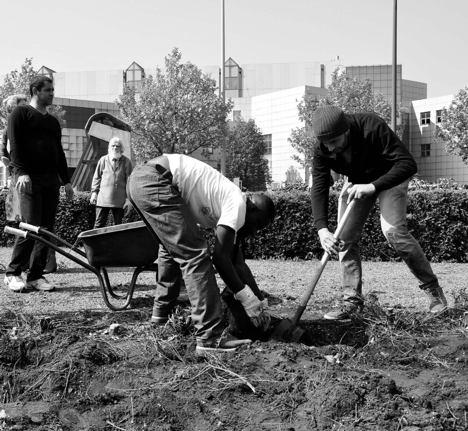 op woensdag 30 april werd het officiële startschot gegeven om de bewoners de mogelijkheid te bieden om te tuinieren op het stationsplein van Antwerpen Berchem. in het midden van de doolhof taxusstruiken stelt de NMBS tweehonderd vierkante meter ter beschikking aan de vzw posthof, een vzw die zich bezig houdt met buurtwerking en sociale tewerkstelling. Samen met