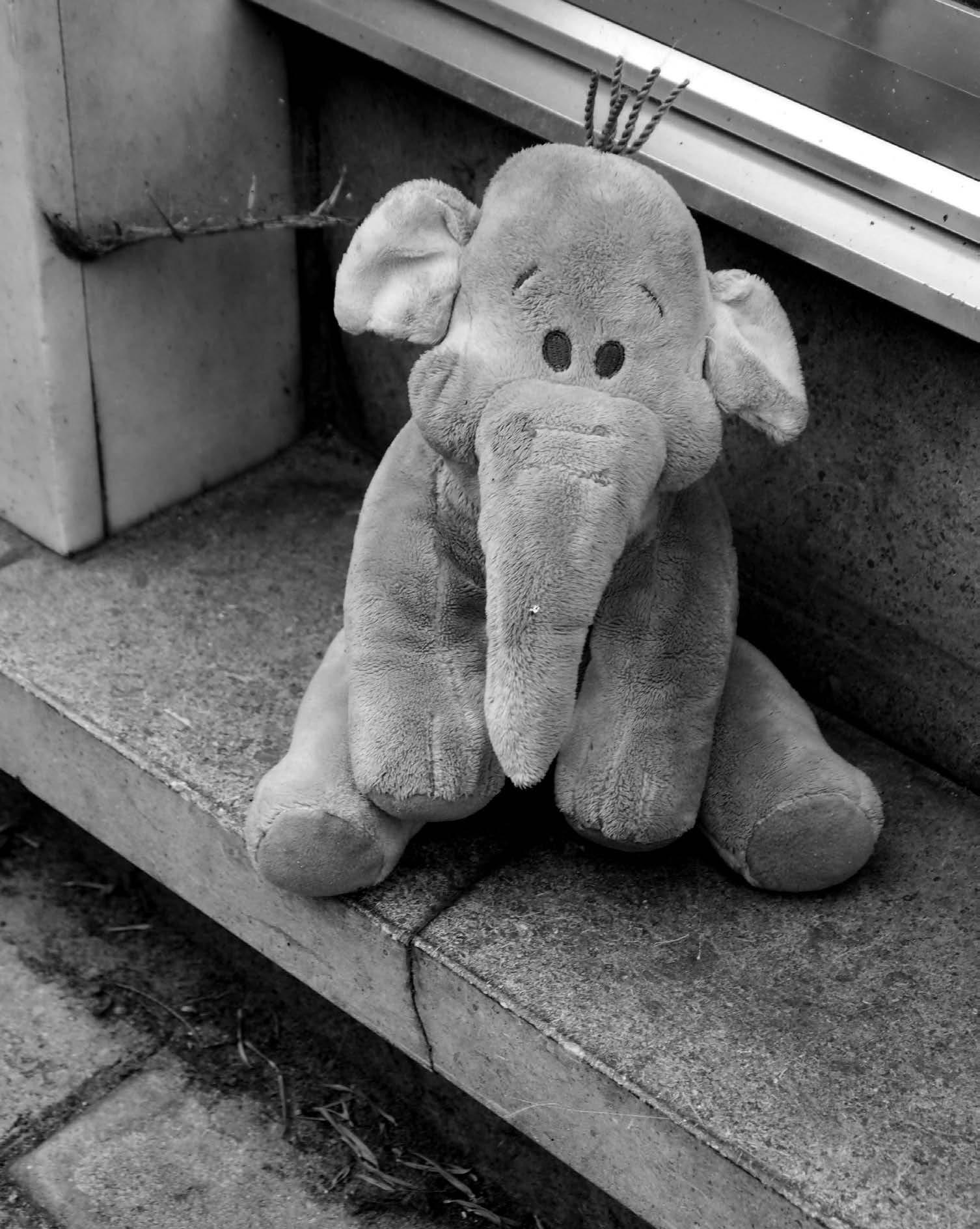 Dit schattige beertje is van huis weggelopen en is op zoek naar een ander baasje want wie zet nu zo’n knulletje verloren op de drempel ? Of toch een kleine vergetelheid daar in de Kleinebeerstraat? • Foto JÖRG PYL