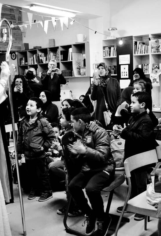 Sinterklaas en zijn zwarte helpers waren voor de eerste keer op bezoek bij Filet Divers. Voor meer dan 130 kinderen hadden ze vooral lekkers mee. • Foto Dani VAN REMOORTEL