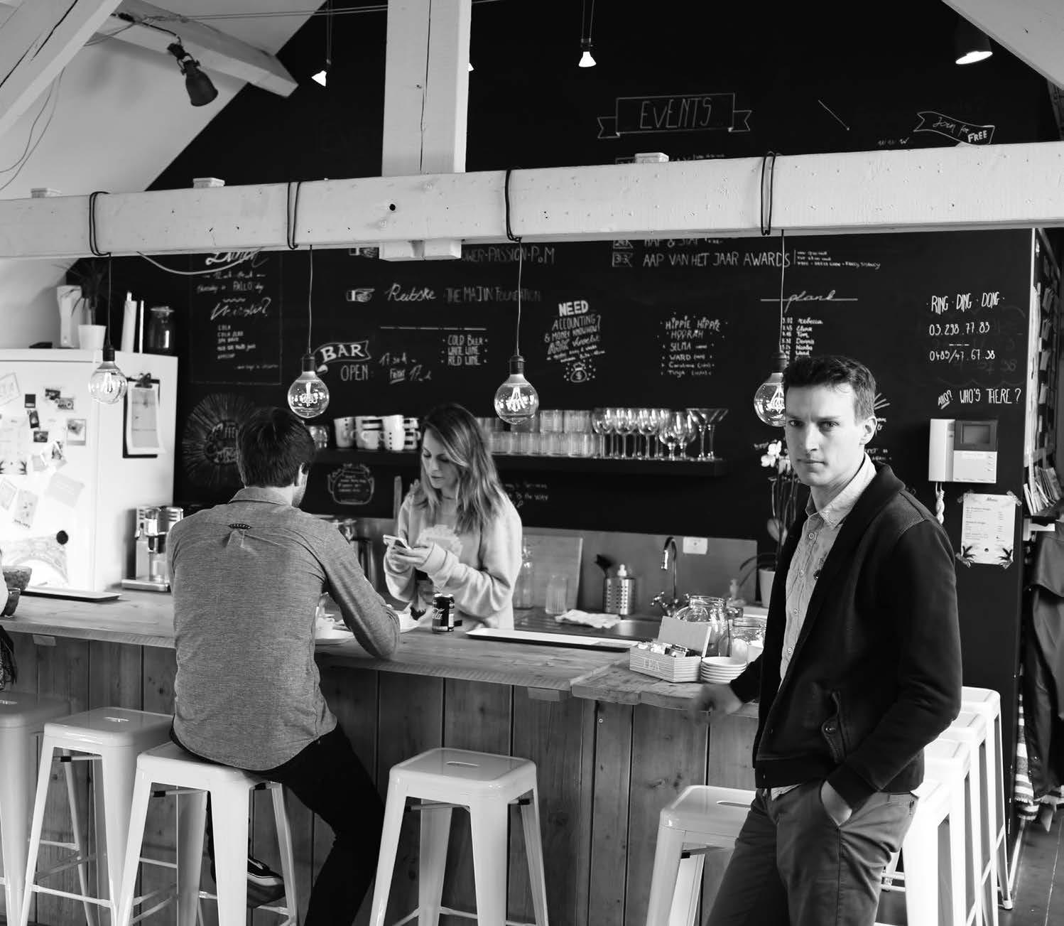 Hans Willemse (47) is noch televisiekok noch chef van een sterrenrestaurant. Hij roert zelfs niet in de potten van een simpele bistro. Maar hij is wel gek op eten en hij schrijft zwierig. Als student communicatie leerde hij het journalistenvak op de Antwerpse redactie van de krant Het Volk. Na zijn burgerdienst, eerst bij het tijdschrift Streven en vervolgens in een Bosnisch vluchtelingenkamp, schreef hij jarenlang voor onder meer Tijd Cultuur, over kunst en cultuur, maar ook over reizen, eten en wijnproeverijen. Zijn journalistieke werk combineerde hij spelenderwijs met een andere passie: Panamarenko. Tot 2015 was hij diens artistieke steun en toeverlaat. De laatste jaren is hij ook actief als freelance tekstschrijver (www.dasfingerspitzengefühl.be).