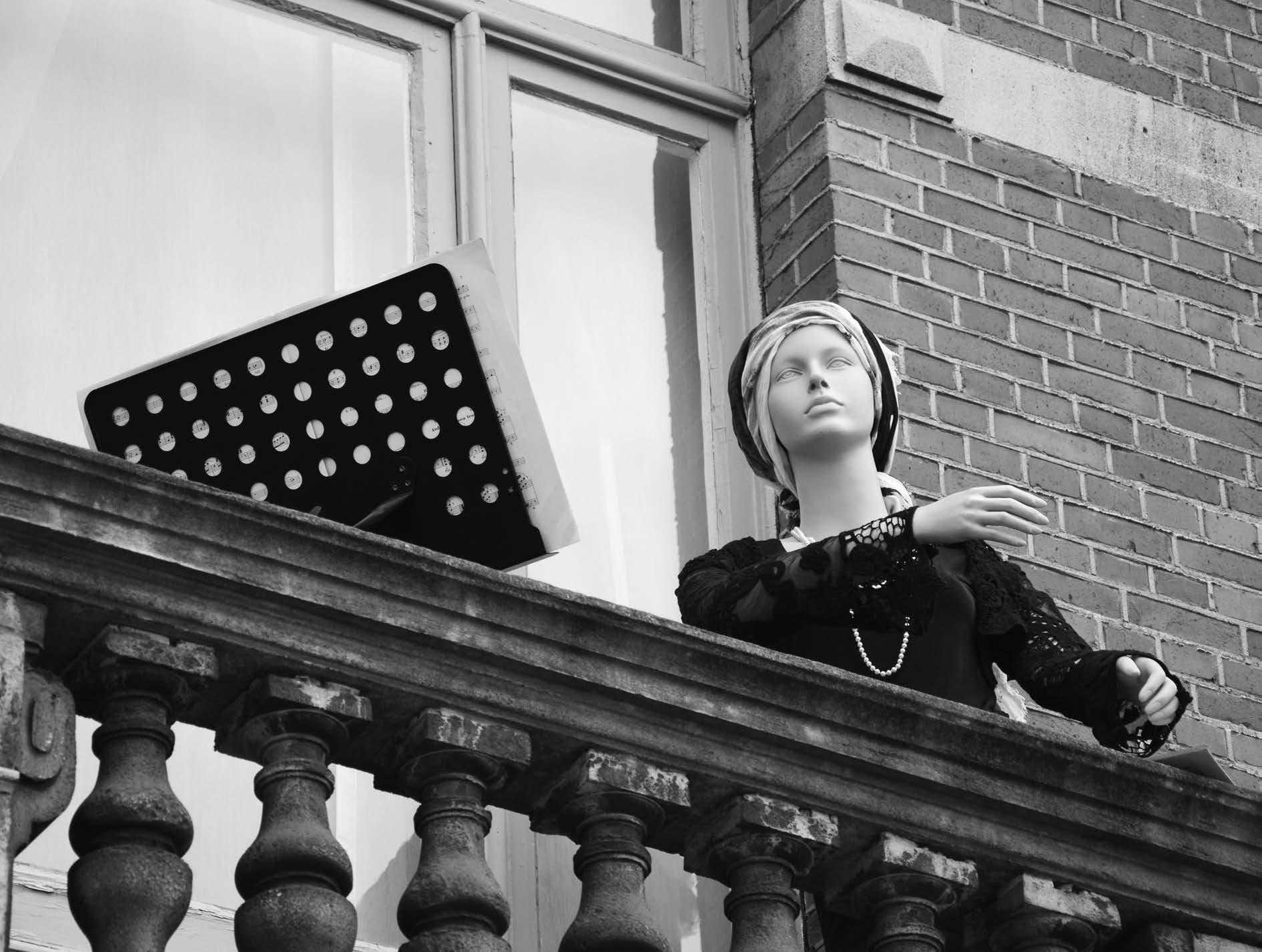 Op de balkons staan nu al poppen die aanduiden wat er op komst is.