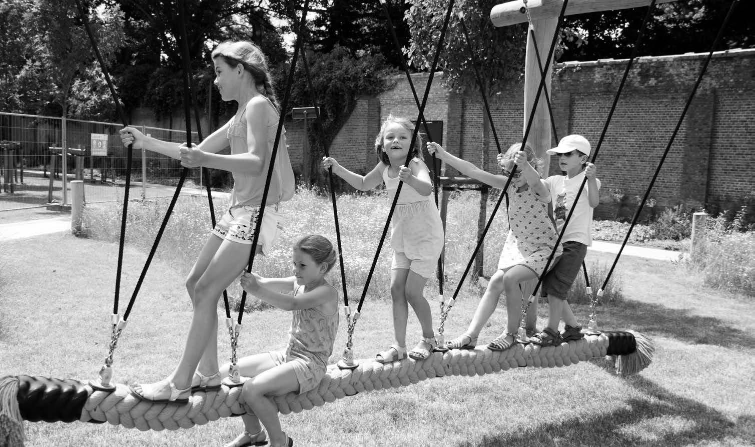 Het plein staat op zijn kop als het vangnet bovenhoofds hangt zo moet niemand bang te vallen of buiten de lijnen te kleuren