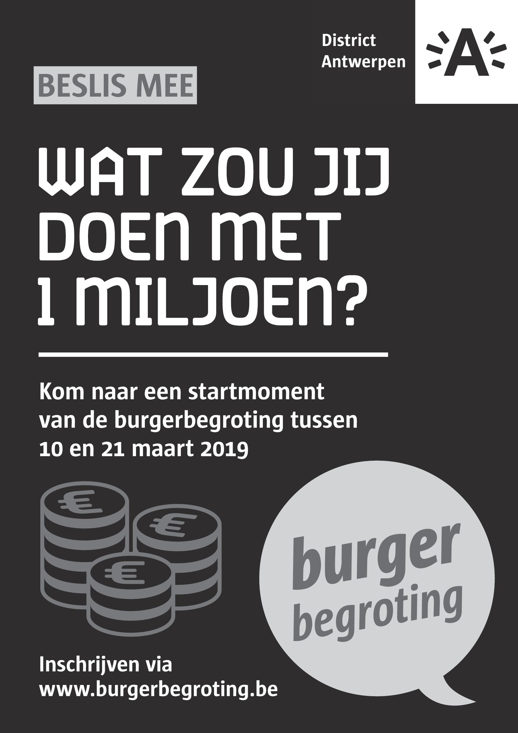 U kan meebeslissen wat er met één miljoen euro kan gebeuren in het district Antwerpen. Hoe? Tussen 10 en 21maart is er een startmoment voor deze “burgerbegroting”. PAGINA 22