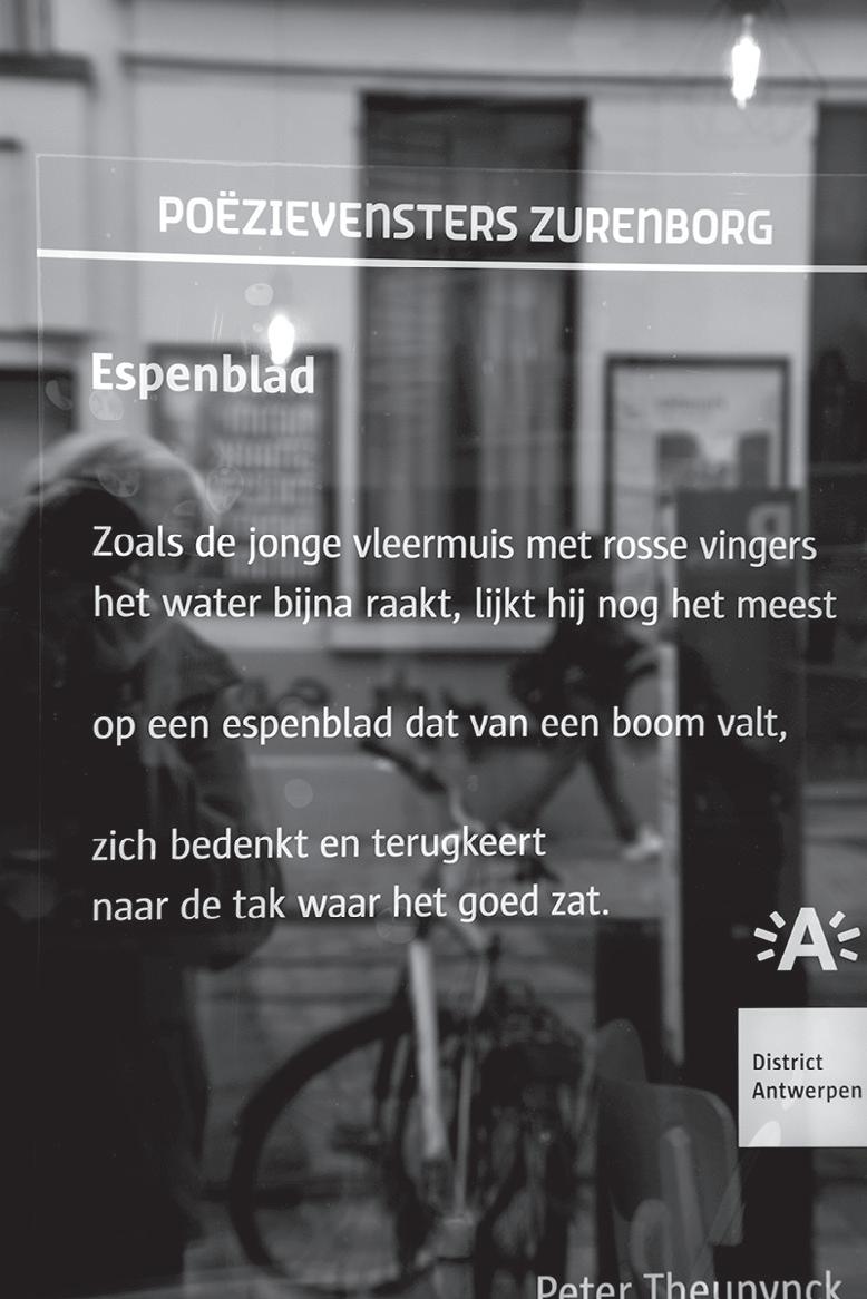 Poëzie voor iedereen! De 5de editie van ‘Poëzievensters’ komt eraan! De dichters uit Zurenborg zijn al druk bezig hun mooiste gedichten uit te zoeken. Een prachtig geschenk, poëzie voor iedereen! We verheugen ons nu al op het moment dat de nieuwe raamstickers straks weer buren, toeristen en toevallige passanten zullen verrassen. Denk je nu: Ik wil ook graag zo’n gedicht! Dan heb ik goed nieuws, dat kan! Via onderstaande link kun je vanaf nu inschrijven voor zo’n gedicht. https://forms.microsoft.com/r/1ekfujkrjF Eind mei 2023 ontvang je van één van onze woordkunstenaars een gedicht voor aan je raam. Namens Poëzievensters: Ricardo ANEMAET Chrisssy's Chris Vissers Retoucheuse Upcycling info.chrisssys@gmail.com www.chrisssys.be 0485 39 33 66 Enkel op afspraak BAKKERIJ GYBELS: OPEN OP ZONDAG Bakkerij Gybels • Dageraadplaats 9 Open elke dag vanaf 6u30 tot 17u Woensdag: tot 15u • Vrijdag: tot 14u Zaterdag: gesloten • Zondag: tot 13u Bestellingen: 03-235 53 21