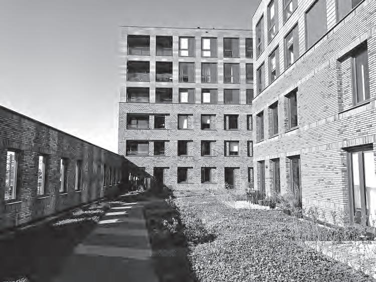 bouwen. Het dak is een goed uitgeruste publieke ruimte met allerhande faciliteiten. Er zijn ook grote en kleine appartementen die een sociale mix garanderen. Alle bewoners zijn daar ook apetrots op hun gebouw. Er is dan ook geen leegstand en het gebeurt zelden dat er een appartement lang te koop staat. De mensen zijn daar gelukkig en zo maken ze ook geen ruzie!”