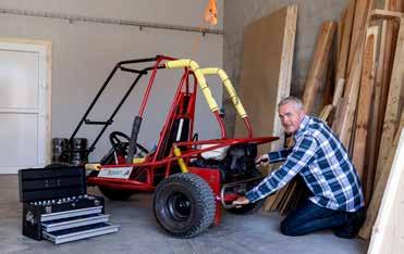 Ved siden af træværkstedet har Galtrup Efterskole som noget nyt indrettet et metalværksted. Her står en havetraktor og en bocart, som lærer Kristian Brøndum netop har fået fat i.