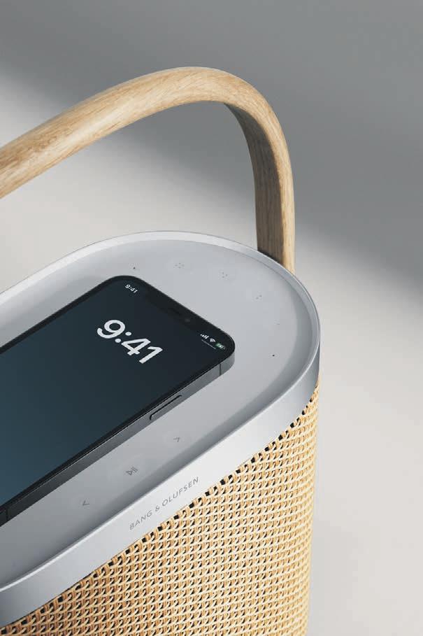 Med 12 timers trådløs spilletid via Wi-Fi eller Bluetooth og trådløs opladning af telefon, er Beosound A5 designet til at tage med fra rum til rum eller på farten.