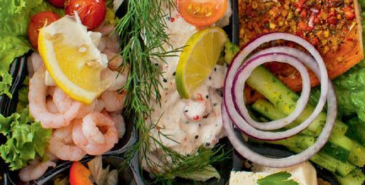 Alt anrettes på fade og i skåle så de er klar til at sætte på bordet – de varme ting leveres i varmekasser.