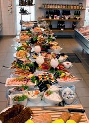 • Vi har altid friskbagte rugbrød, specialbrød, rundstykker, wienerbrød, skærekager, sandwich og salatbar.
