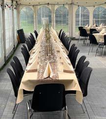 Vi har et bredt udvalg i telte, service, bordpynt, lys, borde og stole – og vi klarer opvasken for dig!