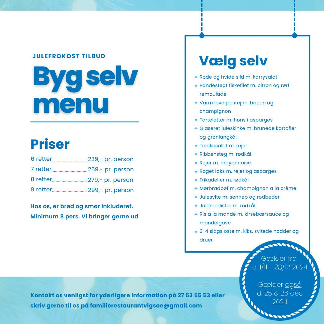 Pr. kuvert kr. 459,Min 12. personer eller efter aftale.