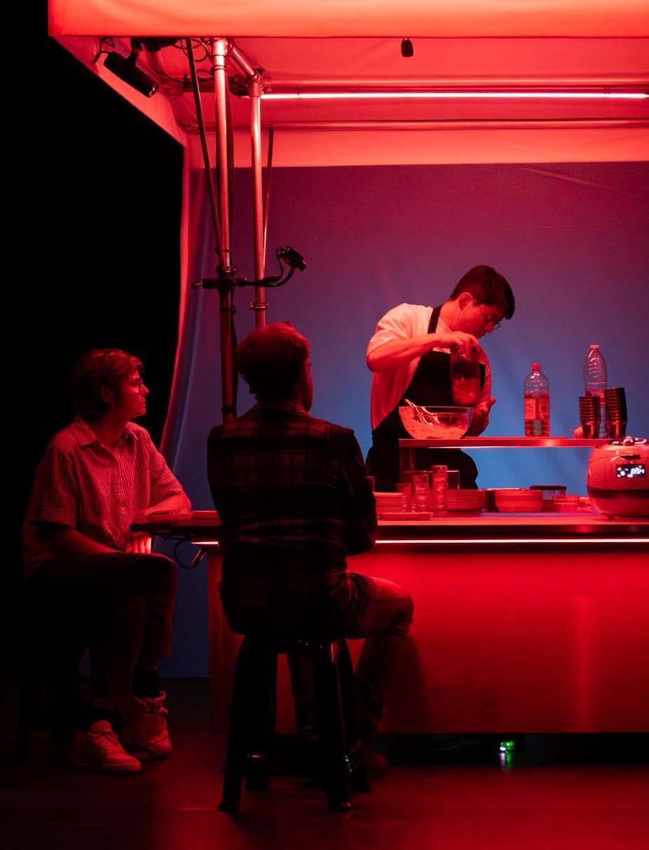 Regi og tekst: Andrea Spreafico | Komponist: Matteo Fargion | Mat: Christopher Haatuft | Utøvere: Ole Bull Kammerkor | Produksjon: Spreafico Eckly i samarbeid med Lysverket | Co-produksjon: BIT | Støttet av Kulturrådet og Bergen kommune | Foto: Andrea Spreafico