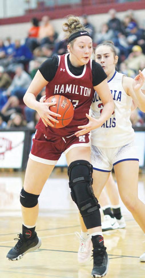 The Hamilton girls, the Hamilton boys and the Corvallis girls, all participated in the Western A Divisional tournament in Hamilton on March 5-7. Left to right: Hamilton’s Taryn Hochhalter, Hamilton’s Cartier Ferguson, and Corvallis’ Ella Varner. Photos by Scott Sacry.
