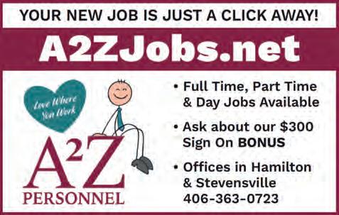FRESH EGGS from Howell’s Happy Hens are back! $5.00/doz. Pick up at Bitterroot Star ofce, 115 W. 3rd, Suite 108, Stevensville.