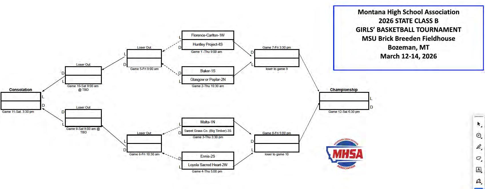 of the bracket, as #1 Baker (23-0) takes on #3 Glasgow (22-2) in the other game in the Florence/Huntley side of the bracket. Florence and Baker played in what seems like years ago on December 6, which Baker won 74-60.