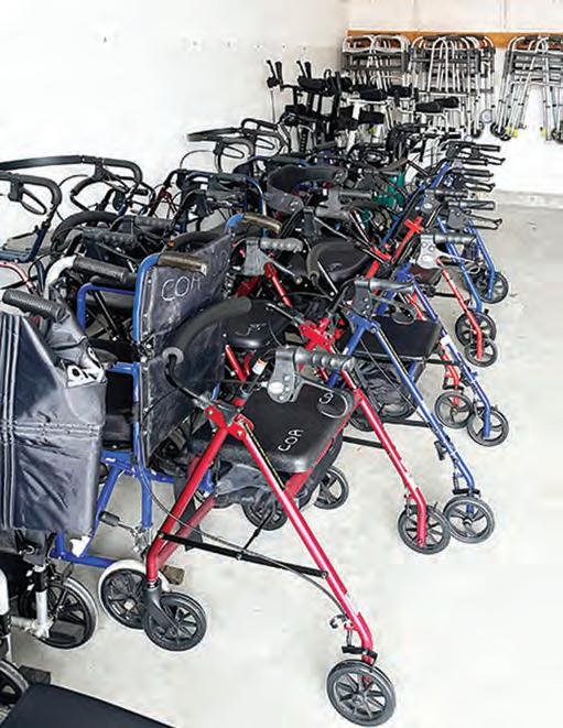 Walkers stand ready for public use at The Loan Closet, a popular service available to county residents of all ages at the Council on Aging in Hamilton. Photo by Victoria Howell.