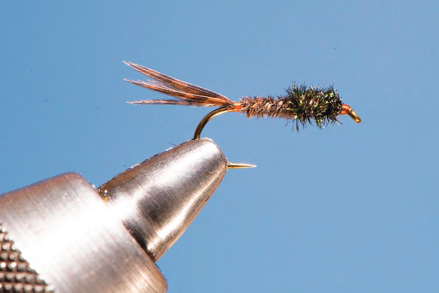 This skinny nymph, Turkey and Peacock, is effective as water rises. Photo by Chuck Stranahan.