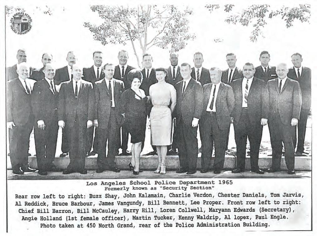 She worked from 1952 to 1982, with the vast majority of that in the LASPD. Holland was one of only eight women in those years. When she started there, the department was only about a dozen ofcers strong. Now, the department has grown to over 600 ofcers and overshadows numerous standard police departments across the country, not only in size, but in training and versatility. Much of that growth occurred within Holland’s time in the department. Holland held numerous positions over the years,