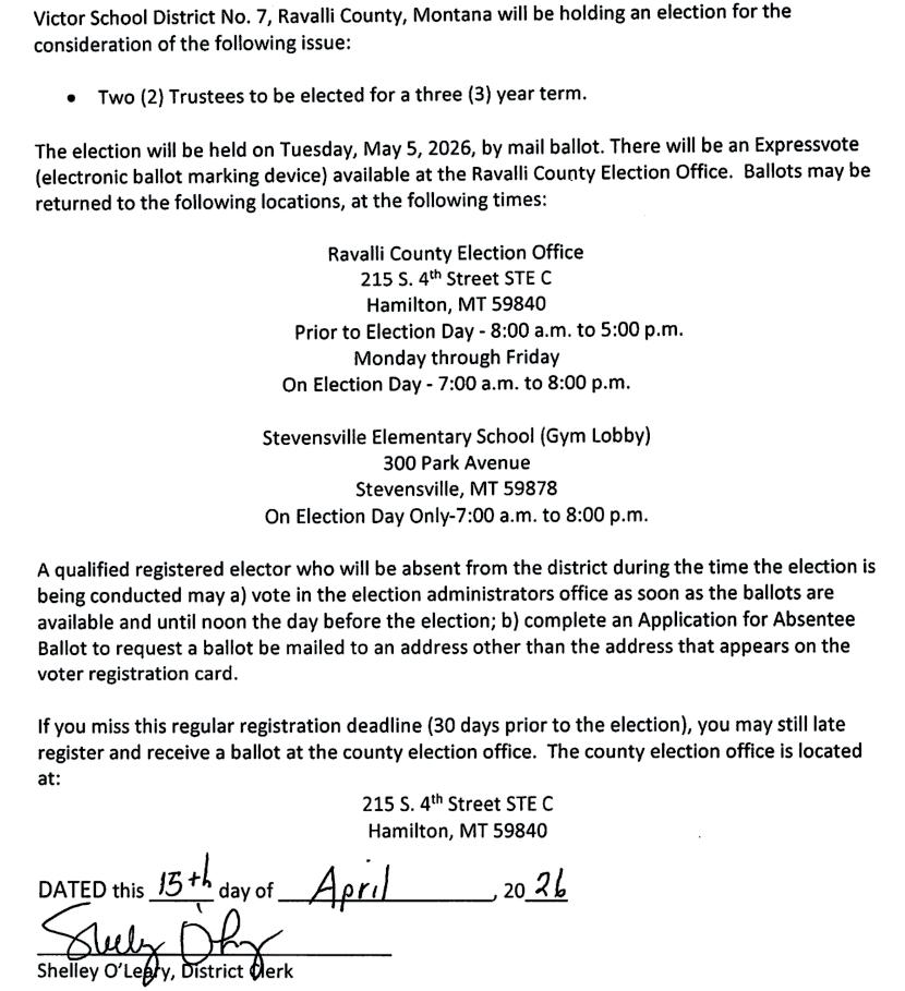 The advertising and editorial content deadline is Friday at 5 p.m. We strive to include news and information that’s important to the people of the Bitterroot Valley. If you have a story idea, or any other concern, call us at 406-777-3928, email: editor@bitterrootstar.com or stop in at our ofce at 115 W. 3rd, #108, Stevensville. The mailing address is P.O. Box 133, Stevensville MT 59870. Correction Policy Accuracy is important to us. If you see a factual error in a Bitterroot Star news story, please notify the editor immediately and we will print a correction in the next issue. Our View/Letters