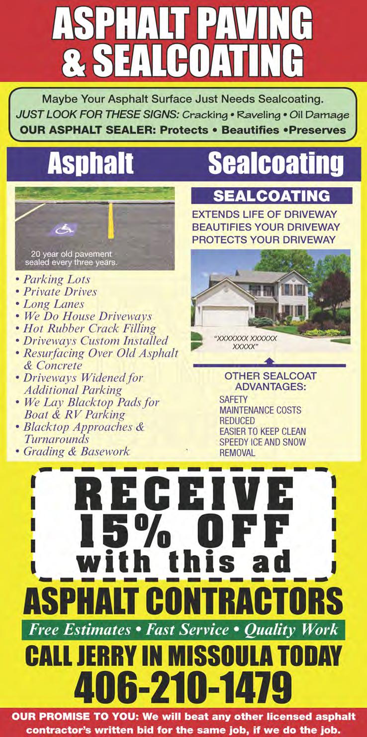 funds. No new right-of-way or utility relocations will be needed. Partnering with the community is an important part of properly planning for future projects. MDT welcomes the public to provide ideas and comments on the proposed project. Comments may be submitted online at mdt.mt.gov/contact/comment-form. aspx or in writing to Montana Department of Transportation, Missoula ofce, PO Box 7039, Missoula, MT