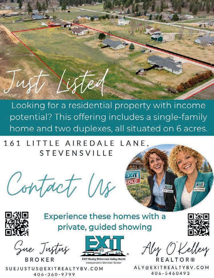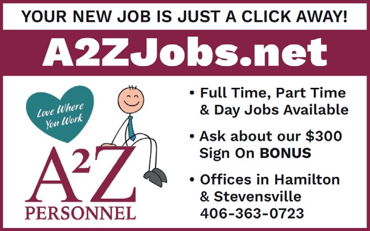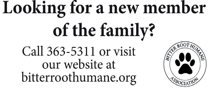 Star Newspaper, Co, a division of Mullen Newspapers. The advertising and editorial content deadline is Friday at 5 p.m. We strive to include news and information that’s important to the people of the Bitterroot Valley. If you have a story idea, or any other concern, call us at 406-777-3928, email: editor@bitterrootstar.com or stop in at our ofce at 115 W. 3rd, #108, Stevensville. The mailing address is P.O. Box 133, Stevensville MT 59870. Correction Policy