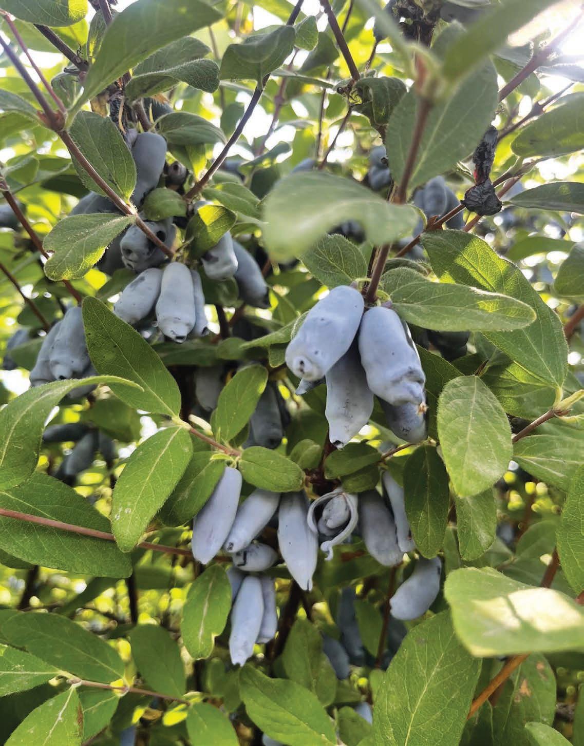 Melissa Allred of Aspen Grove Farm in Corvallis is the frst commercial honeyberry grower in Montana. Her fve acres of honeyberry bushes produce about 15,000 pounds of berries annually, all ripening in a narrow window from early July to early August. This sounds like a delicious problem to have, but it poses a challenge on the sales side: simultaneous ripening means that the bounty must all be dealt with at once. Even with presence at area farmers markets, a farmstand, U-pick days, and wholesale and retail customers, not all of Allred’s berries can be sold fresh. Last summer, Therrien worked at Aspen Grove, where he learned frsthand about the risk that all that simultaneous berry abundance would result in food waste.