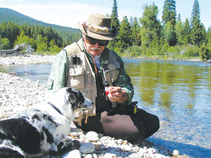 Millie the trout shepherd helps the author select a fly. Photo by Chuck Stranahan.