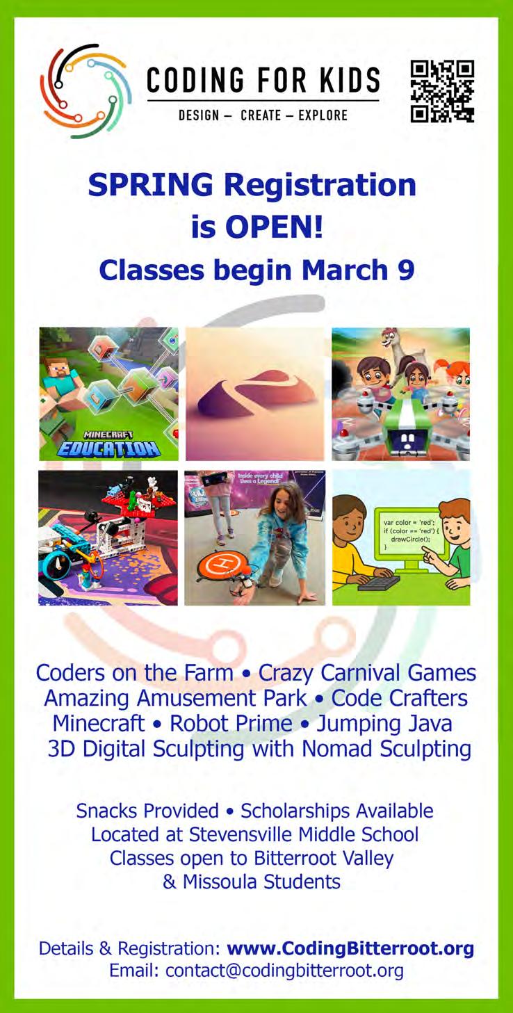 Are you a graduating high school senior in the Bitterroot Valley? The GFWC Bitterroot Woman’s Club & Foundation is excited to announce the availability of $1,000 scholarships to help fund your future. Applications are open now through March 12, 2026. Don’t miss this fantastic opportunity to receive fnancial support for your next educational journey. Application information can be found on the club’s website at https://www. gfwcbitterrootwomansclub.com/bitterroot-scholarship-program
