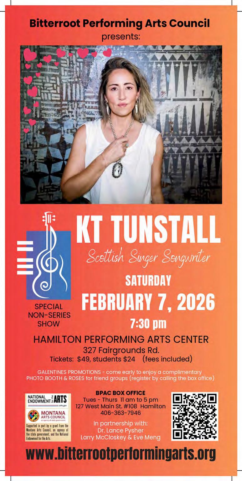 site and is for informational purposes. The BCC will also hold a Public Hearing to review the proposal on February 26, 2026 at 1:00 p.m. in the Commissioners’ Meeting Room (Third Floor) at the County Administrative Center (215 S. Fourth Street, Hamilton, MT 59840). The public may comment verbally, or in writing, at the meeting/ hearing. Comments and information submitted at the public meeting/hearing will be considered in the decision on the subdivision. ***This legal ad will run two times January 28, 2026 and February 4, 2026. Certain dates in February 4, 2026 posting may have passed. BS 1-28, 2-4-26. MNAXLP
