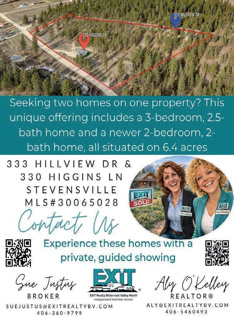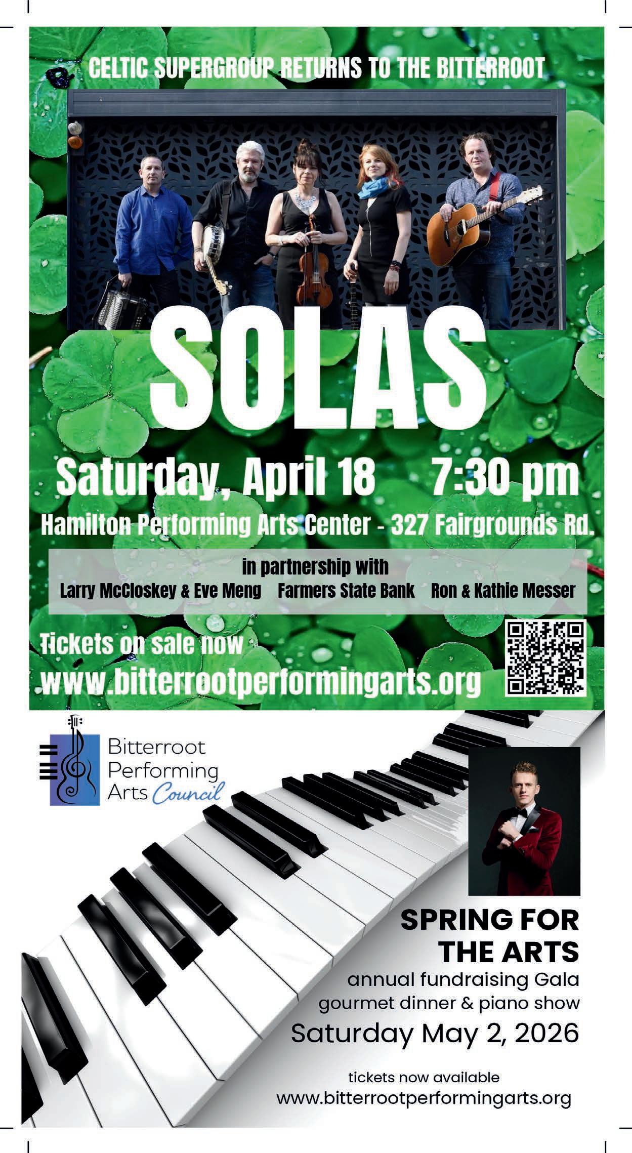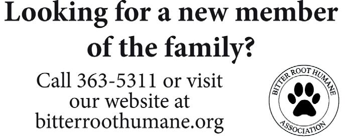 Wednesday by Bitterroot Star Newspaper, Co, a division of Mullen Newspapers. The advertising and editorial content deadline is Friday at 5 p.m. We strive to include news and information that’s important to the people of the Bitterroot Valley. If you have a story idea, or any other concern, call us at 406-777-3928, email: editor@bitterrootstar.com or stop in at our ofce at 115 W. 3rd, #108, Stevensville. The mailing address is P.O. Box 133, Stevensville MT 59870.