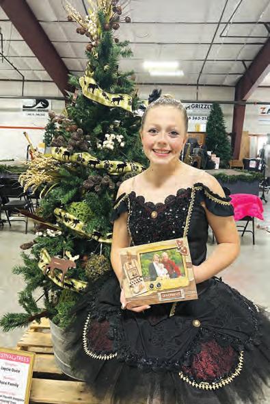 Jaycie Duce decorated a memori al tree to honor her grandparents at last week’s Festival of Trees in Hamilton. The tree, named “Of the Grid,” won a people’s choice award and was auctioned at the Tuesday night dinner with proceeds ben efting Bitterroot Health Hospice. More than 200 people attended the dinner and hundreds voted on their favorite trees and wreaths over the weekend. The event was hosted by Bitterroot Health Foundation but collaboratively raised funds for almost 20 local non proft organi zations. Jaycie was dressed in her ballerina costume because she also helped with the “Teddy Bear in the Trees” children’s event.