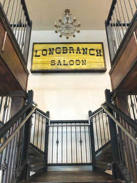 Visitors to the new taphouse will immediately notice the old Long branch sign, prominently displayed above the landing of the Grand Stair case. “They really used as much of it as they could,” says Lisa Rett, Operations Manager. Rett points out the fooring, cooler cabinets, shufeboard table, as well as framing from the original Longbranch building. The owners even made use of the old railroad gas lamps (wired for electricity) that line the walkway in the 21 and over space on the second foor.
