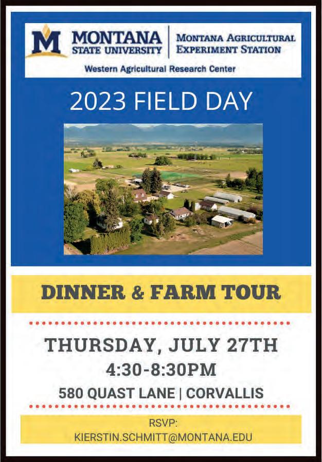 in the preliminary process of developing a vegetation treatment southeast of Sula in the Sula State Forest. The proposed project would harvest up to 5 -6 million board feet on approximately 3,600 acres. 3,500 acres of non-commercial thinning would also occur, along with noxious weed management, and tree planting. This land is School Trust Land, and the harvest would provide revenue to the Common School Trust, Capital Buildings Trust, and Montana Tech Trust. The department is seeking comments from interested parties. Comments are due August 3, 2023. Please direct comments to: Thayer Jacques DNRC Hamilton Unit P.O. Box 713 Hamilton, MT 59840 Or: tjacques@mt.gov BS 6-28-23 thru 7-26-23.