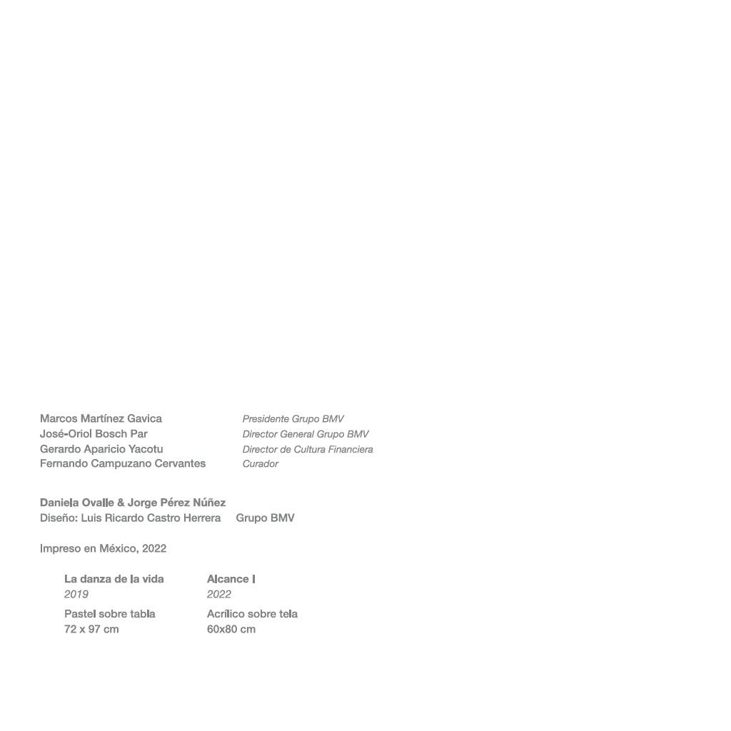 El Grupo Bolsa Mexicana de Valores apoya el trabajo de artistas emergentes desde hace ya 20 años; hoy tenemos el gusto de presentar la obra de dos jóvenes creadores Daniela Ovalle y Jorge Pérez Núnez. Confiamos en que esta muestra contribuya al conocimiento del trabajo de estos dos representantes del arte emergente en México.