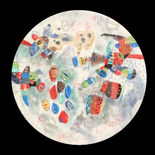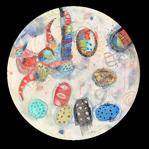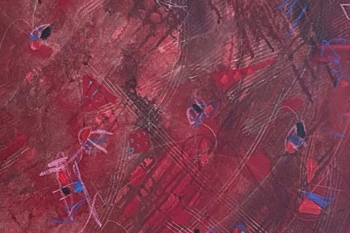 De este impulso primigenio surgen formas abstractas que acentúan el colorido pleno de tensión, distribuido sin orden entre los colores básicos y los secundarios. De ahí la sensación de formas suspendidas que parecieran sin relación alguna con el fondo, mas es la inspiración infantil el elemento que nutre el espacio pictórico para renovarlo con una presencia humana vigorosa.
