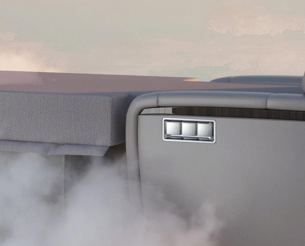 The cabin has been thoughtfully redesigned to balance modern elegance with lasting comfort. Premium textiles from Italian house Loro Piana set the tone: a Westbury Light Grey wool