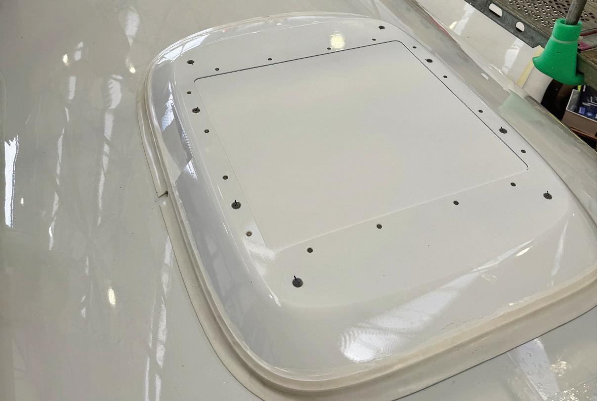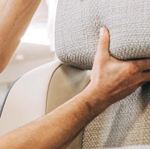 Despite the challenges, the decision to apply the veneer horizontally enhanced the interior’s visual flow. Then there was the carpet. This was everything to the customer. It created the cabin’s focal point. Similar to the seat colour, the owner had a very specific colour for the carpet—a rich, chocolate brown. Finalising the carpet design proved to be the most challenging part of the process. After much back and forth, Molly presented an option that simulated a flowing river down the centre of the cabin.