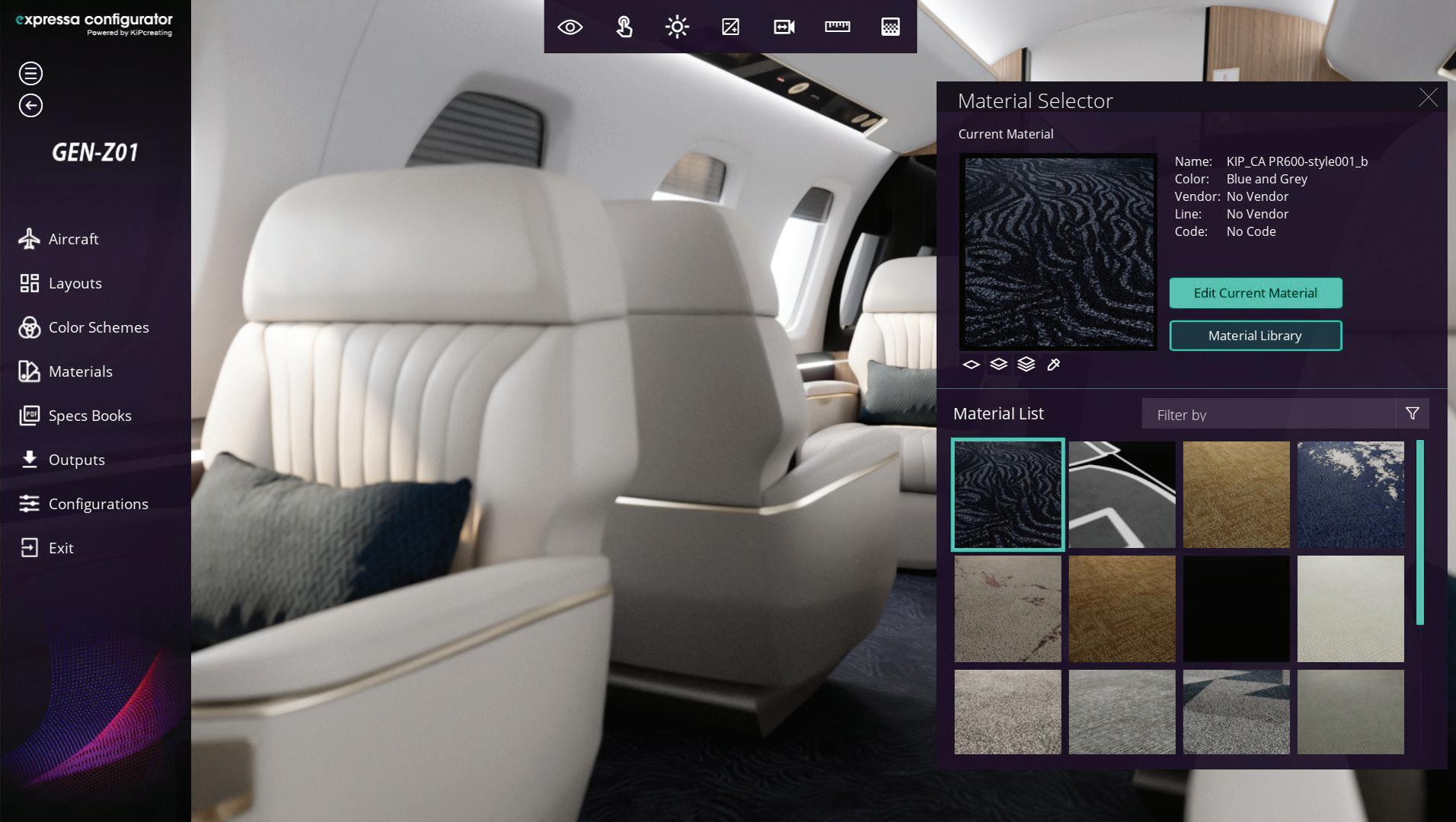 The team chose Scott Group Studio in Grand Rapids, Michigan, to make the carpet. The result is a handmade custom carpet that moves the eye through the cabin. The completed cabin featured many other unique focus points, including a custom reading light bezel that would demand FAA certification since no G650 had ever had one.