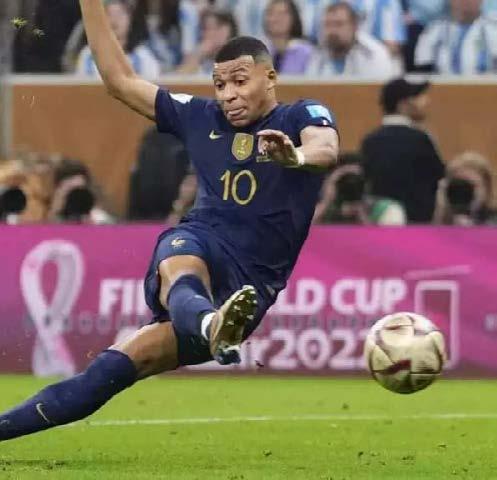 scored once more for Argentina in the second overtime period. He raced to the net from close range. After his powerful shot struck Gonzalo Montiel in the arm, Mbappé was given a second opportunity in the 118th minute. Mbappé scored his third goal, and became the second player to score a hat-trick in a men's World Cup final following Geoff Hurst for England in 1966, with a shot to the left that fooled the goalie. With the score level at 3-3 and Kolo Muani's late low attempt blocked by Emiliano Martnez, the game was settled by a penalty shootout.