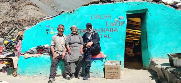 With Chacha & Chachi at their Dhaba in Batal: Chacha & Chachi are the pride of Spiti’s unassuming Batal valley. Batal at an altitude of over 13,000 ft is a perilous region with no network signal negligible human habitation and only deadly roads. Despite that, this old couple has their make-shift Dhaba, ensures delectable food and comfortable accommodation.