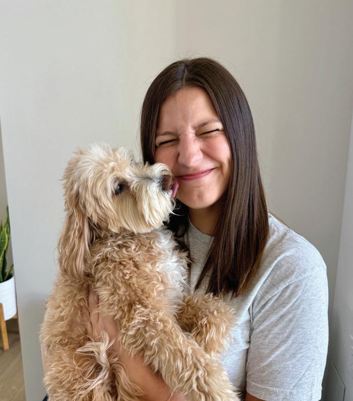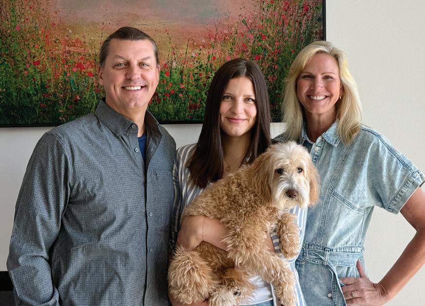Riley Scharnek (center) with her parents and investors, Kevin and Tracey Scharnek, and dog Phoebe. As franchise partner, Riley will oversee the day-to-day operations of what will be five Scenthound locations, while her parents – who found success as Orangetheory Fitness franchisees – provide financial backing and operational guidance.
