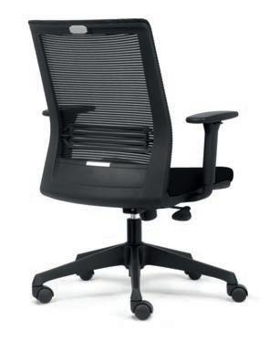 Ergonomische bureaustoel met wit kunststof voetenkruis, 4-locking kantelmechaniek en instelbare gewichtsregeling. De net bespannen rug is voorzien van een in de hoogte verstelbare lendensteun, voor extra ondersteuning in de onderrug.