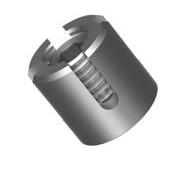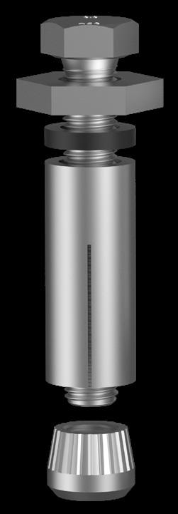 Upon tightening the fasteners, the washer presses the slotted expansion sleeve up the tapered ends of the pin.