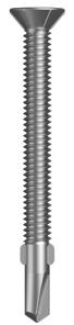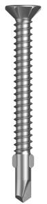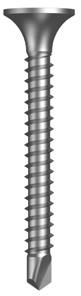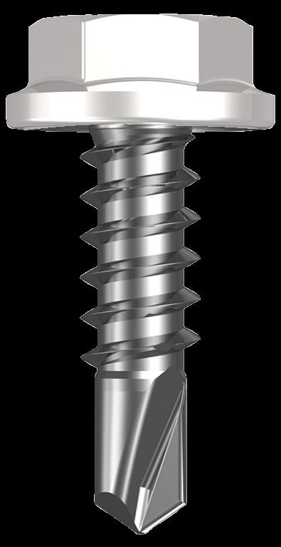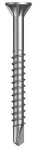 A bi-metallic screw is comprised of two metal types. The point is manufactured from high-carbon steel that is heat-treated to give it the ability to self-drill. The head section is made from a corrosion-resistant stainless steel (304 or 316). The two metals are ‘fused’ to form a screw that offers excellent self-drilling properties, combined with exceptional corrosion resistance.