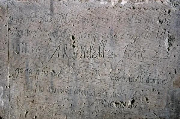 St Philip was the original patron saint of Duke Henry’s church in Arundel, probably not least for the fact that St John Henry Newman, Duke Henry’s friend and mentor, was a priest in the Oratorian Order. Philip has his own altar in the South Transept with a life-size statue above., and scenes from his life are depicted in the two great lancet windows on the south wall. None of these images reflect the easy charm and warm sense of humour for which the saint was famous, and whereas St Philip Howard’s statue in the North Transept includes his faithful hound, Philip Neri has not been allowed the company of his little white dog Bianco